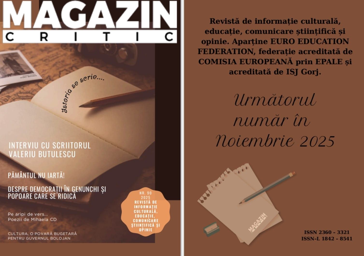 Revista MAGAZIN CRITIC a împlinit 19 ani de apariție neîncetată. Din luna martie 2007, publicația/ziarul online înregistrează cele mai importante evenimente din lume, comentează lumea politică și culturală, dar, nu în ultimul rând, perpetuează limba și cultură română, în paginile revistei fiind publicate poeziile autorilor de limba română, opiniile personalităților de importanță națională, cât și comunicări și cercetări științifice, antropologice, teologice, etnologice și filozofice ale prezentului.